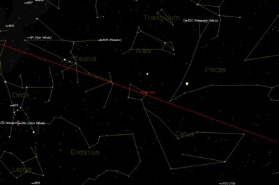 Click on Picture to enlarge, 150KB. This chart depicts the Asteroids orbit and relationship to the constellations. | |||||||||||||||||||||||||||||