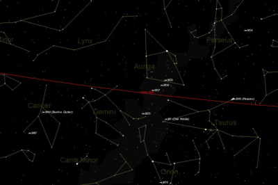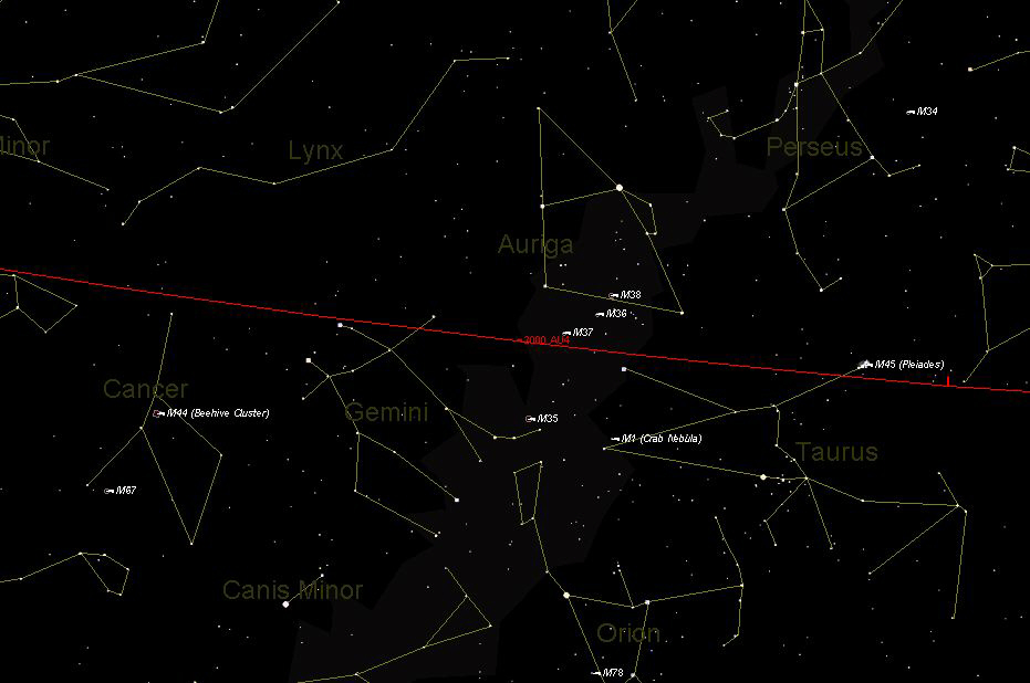 Click on Picture to enlarge, 150KB. This chart depicts the Asteroids orbit and relationship to the constellations. | ||||||||||||||||||||||