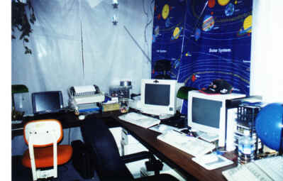 The whole operation is run remotely from my war room in our house. The basement observatory remains in tact and is used for getting the initial alignment and equipment on line. One the equipment is running everything is then operated through PC Anywhere 2 stories up over 100mb 100 Base T Switched Network. Everything can be comfortably run on a single machine with 19” monitor. Sometime I run one session on the laptop and the other functions on my workstation. All of this has made for a very friendly functional setup! | ||||||||||||||||||||||||||||||||||||||||||||||||