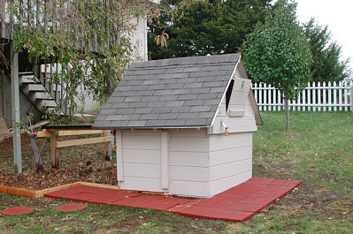 This is a side view. There are a few little paint details that remain to be completed. The front hatch was an interesting challenge as security considerations and inward facing hinges were essential. The shelter has 5 different locks and an alarm system. The patio allows convenient access to the locks and eases opening and closing the shelter. | ||||||||||||||||||||||||||||||||||||||||||||||||